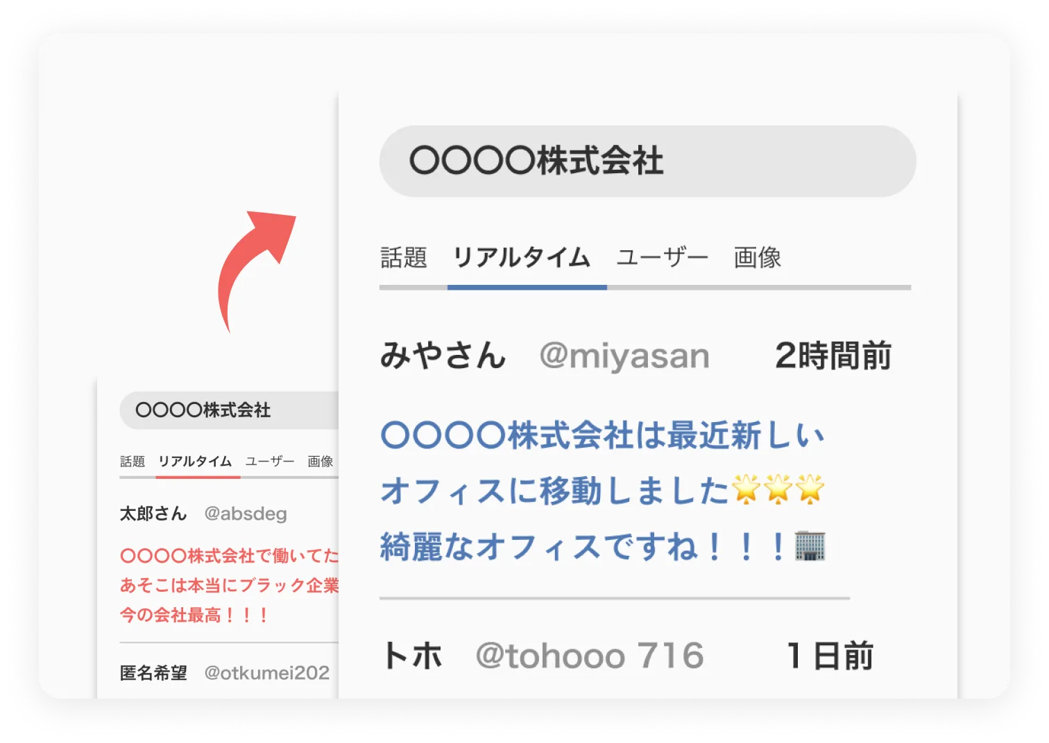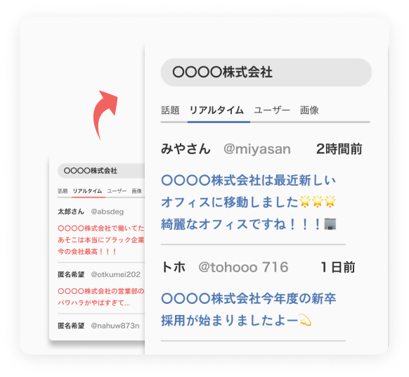 SNSで拡散されてしまったネガティブな情報を目立たなくしたり、公式SNSの運用方法を見直して最適化したりする対策です。