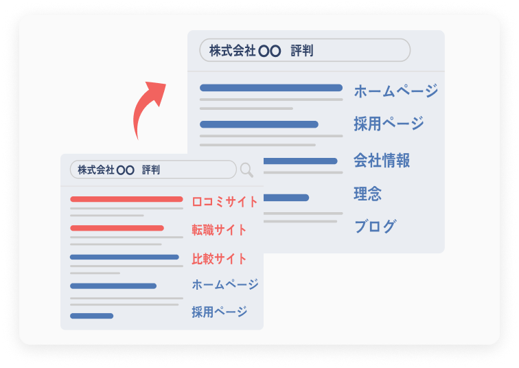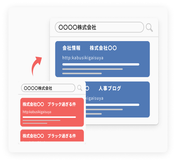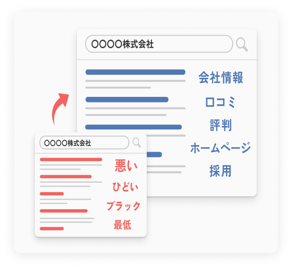 GoogleやYahoo!などで企業名・サービス名を検索した際、検索結果上位の表示内容を整え、1ページ目の印象を健全に保つ対策です。