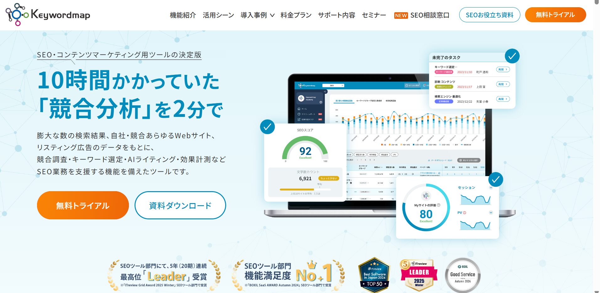 検索ボリュームや競合のキーワードといった情報などもマップ形式で表示してくれるため、視覚的に直感で理解しやすいでしょう。