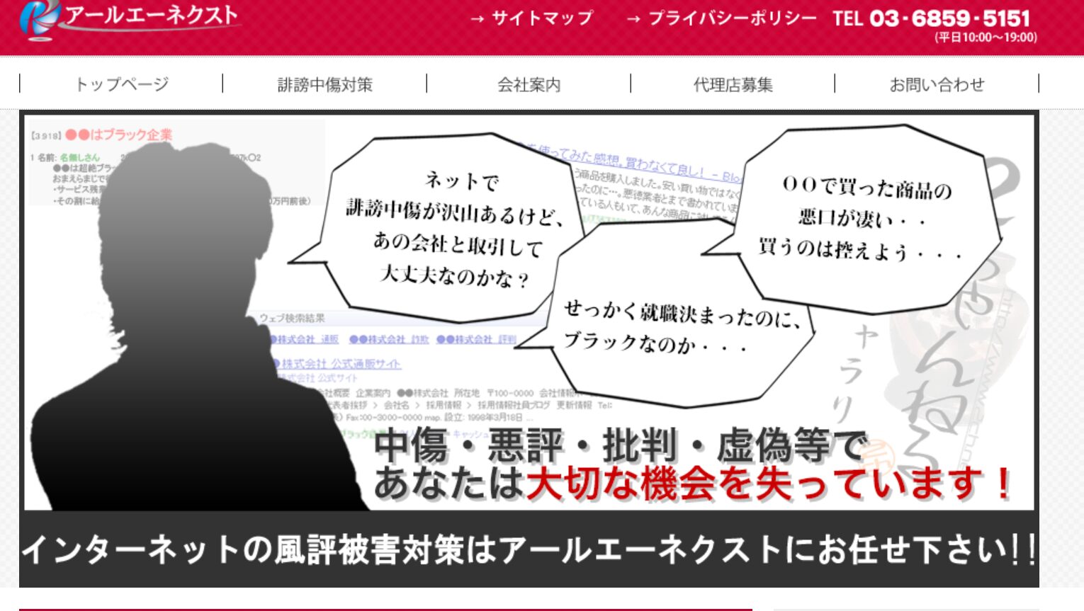 株式会社アールエーネクストの風評被害対策では、逆SEOとは異なる施策でネガティブワードの非表示を目指すサービスを行っております。