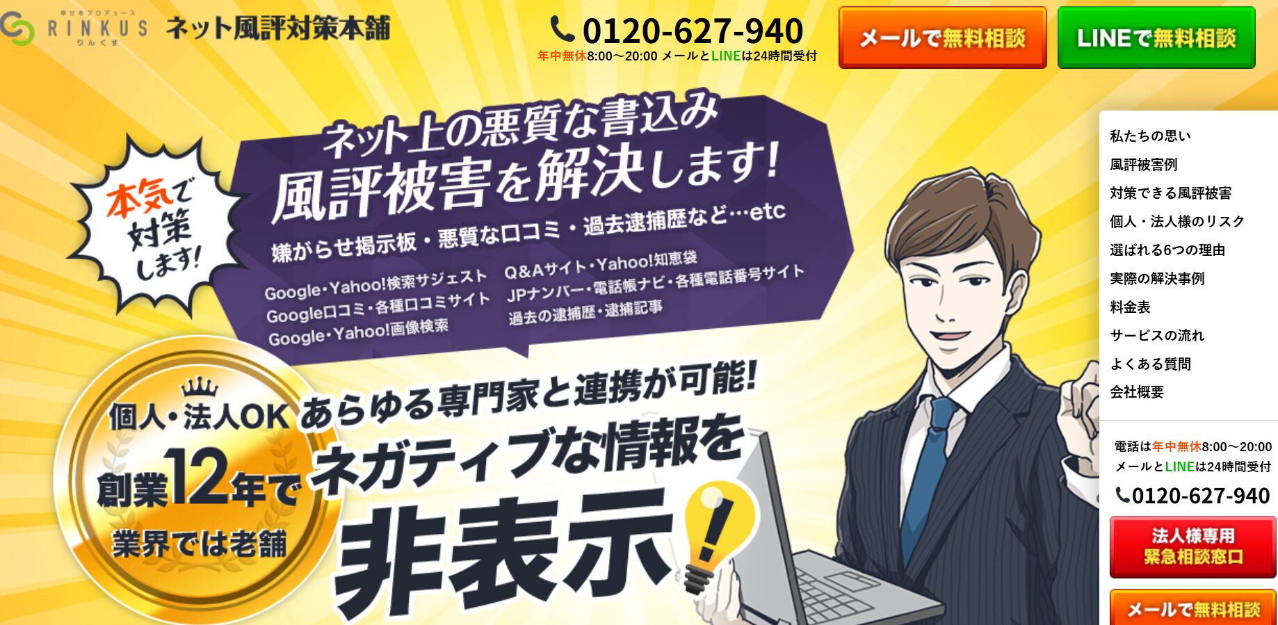 株式会社リンクスが提供するサービス、ネット風評対策本舗では、Google・Yahoo!などの検索エンジンのサジェストや各種口コミサイト、掲示板などに対する対策を行っています。