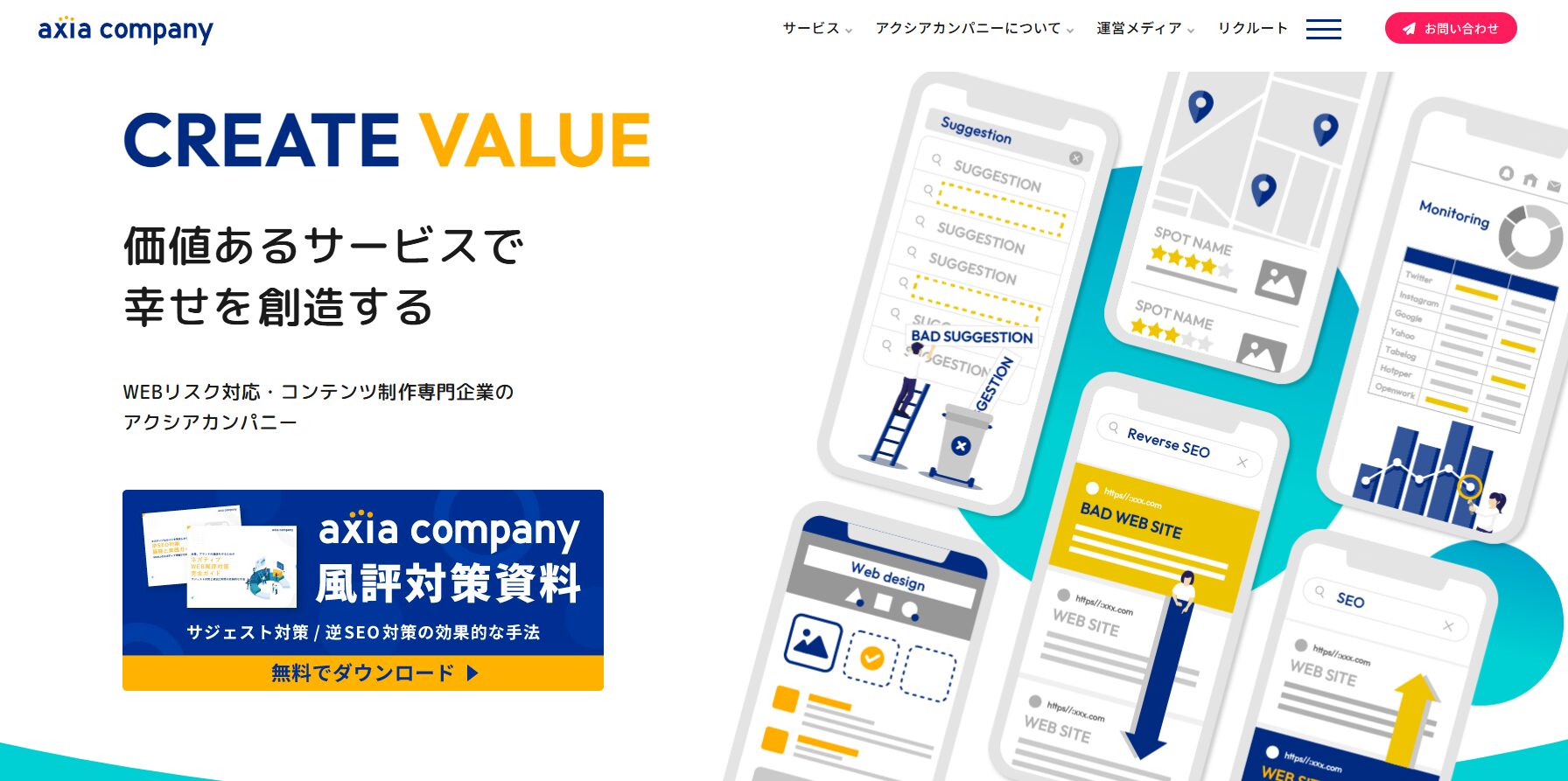 株式会社BLITZ Marketingによる風評被害対策、Webブランディング事業では、逆SEOやサジェスト・関連キーワードへの対策などを中心とした対策を行っています。
